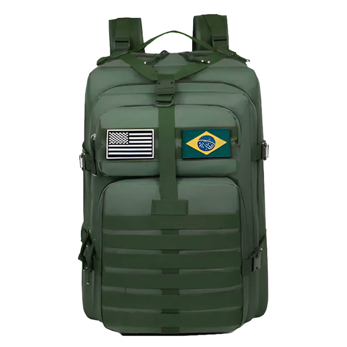 Projetada para máxima resistência e funcionalidade, a Mochila Militar Tática 50L é ideal para trilhas, acampamentos, aventuras, missões táticas e uso urbano intenso. Fabricada com material impermeável e costuras reforçadas, oferece alta durabilidade mesmo em condições extremas. Seu sistema MOLLE permite acoplagem de bolsos e acessórios, enquanto os múltiplos compartimentos garantem excelente organização. Conta com alças acolchoadas e zíperes reforçados para conforto e segurança durante o transporte. Acompanha patches removíveis das bandeiras do Brasil e dos EUA para personalização.
